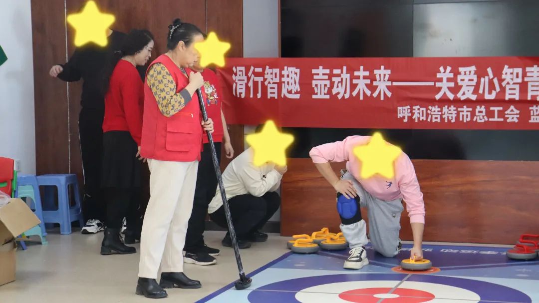 2月23日,呼和浩特市总工会职工志愿服务队在三顺店社区举办“滑行智趣 壶动未来”--关爱心智青少年冰壶课专场活动。此次活动为10名孩子精心打造了一个融合智慧、勇气、团队精神与健康于一体的冰上艺术体验,让他们在冰壶运动中找寻到属于自己的闪耀舞台。