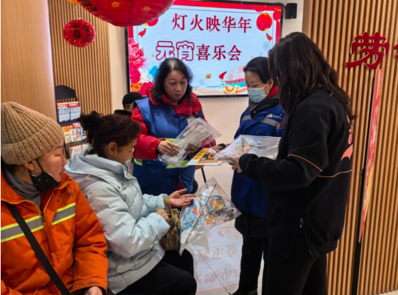 2月12日元宵节当天,赛罕区总工会联合创业路社区联合会,在赛罕区劳动者港湾举办了一场别开生面的暖春活动,把关怀送给户外劳动者们。