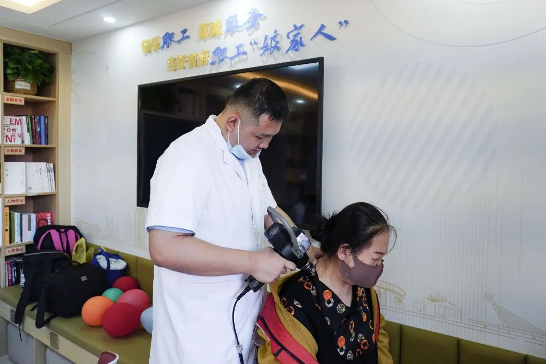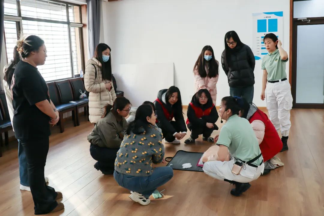 义诊现场,医疗人员为新就业形态劳动者、社区居民、户外工作者等群体提供健康咨询、基础健康检查、推拿、艾灸等服务,同时开展全天心理咨询,全方位守护职工健康。急救技能培训中,专业讲师向工会干部、社区职工、公安民警及志愿者详细讲解心肺复苏操作步骤,并进行模拟实操演练,提升应急救援能力。此外,市总工会还贴心地准备了理疗体验券,随机发放给现场参与活动的职工群众。
