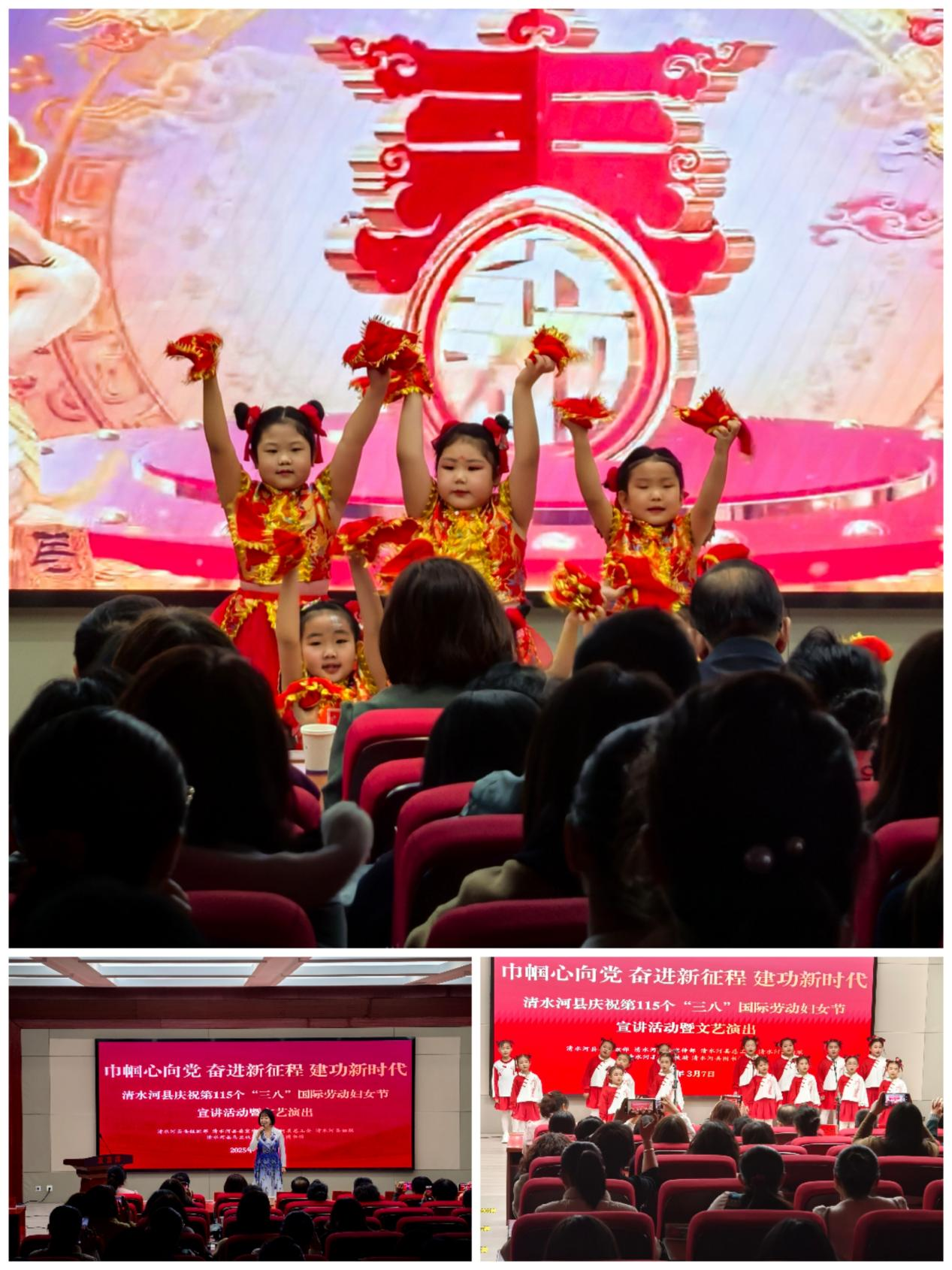 在第 115 个“三八”国际劳动妇女节来临之际,为展现清水河县女性风采,激励广大妇女积极投身新时代建设,3月7日,县总工会联合县委组织部、县委宣传部、妇联、乌兰牧骑、图书馆共同举办的庆祝“三八”国际劳动妇女节宣讲活动暨文艺演出在清水河县工人文化宫成功举行。