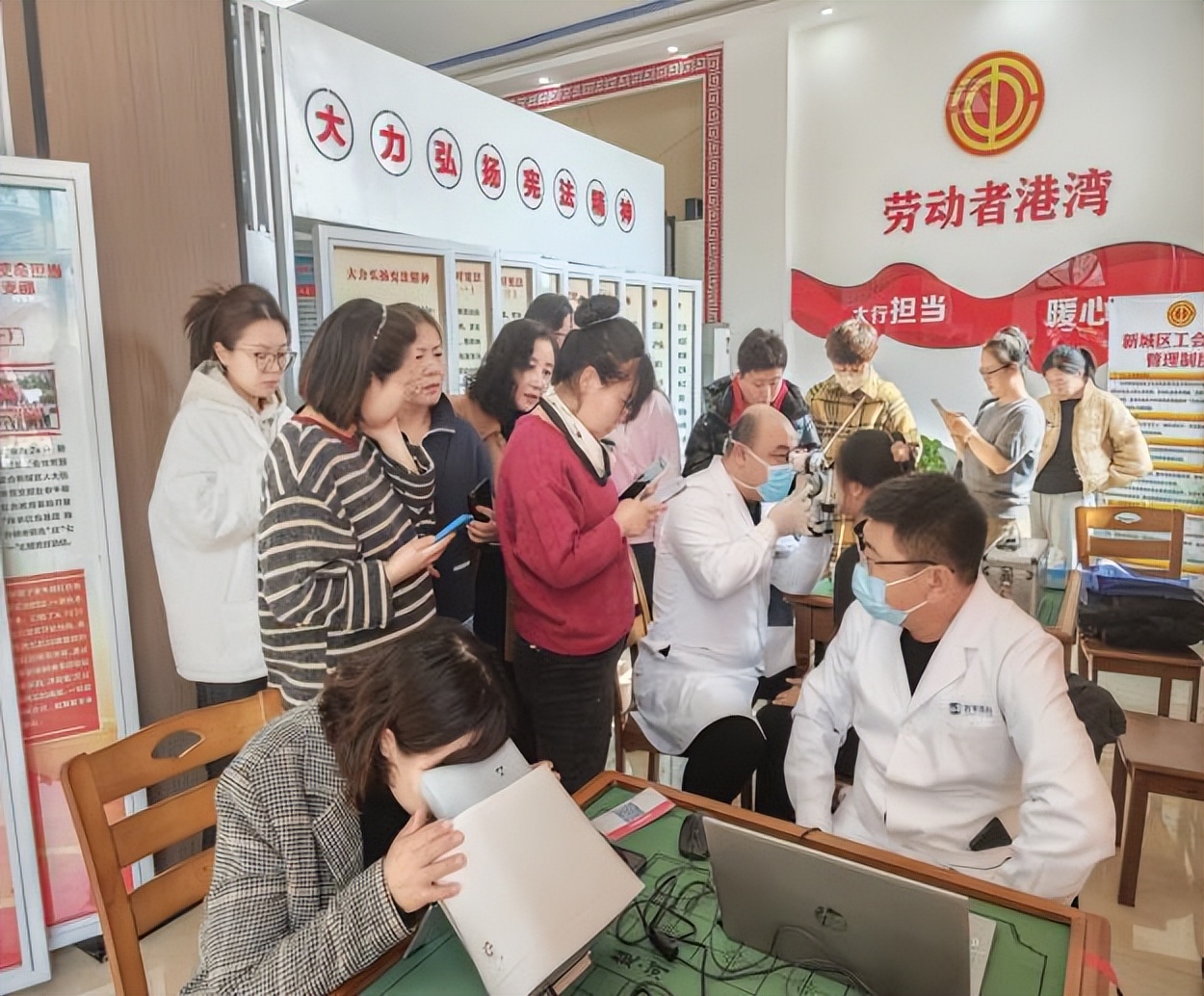 活动现场,朝聚眼科医院专业医疗志愿团队为40余名快递员、网约车司机等新业态劳动者提供免费眼科检查,涵盖视力测试、眼压测量、眼底检查等项目,旨在帮助职工早发现、早预防眼部疾病,提升爱眼护眼意识。同时,医疗志愿团队还为职工深入浅出地讲解日常眼部保健知识,引导大家养成良好用眼习惯。