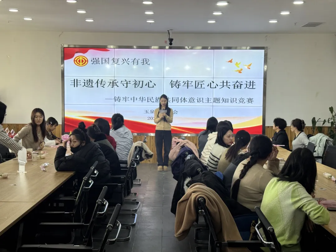 为贯彻落实习近平新时代中国特色社会主义思想和党的二十届三中全会精神,坚持以铸牢中华民族共同体意识为工作主线,促进各民族职工群众团结奋斗、共同发展。近日,玉泉区总工会于区党群活动服务中心开展了“非遗传承守初心 铸牢匠心共奋进”铸牢中华民族共同体意识主题知识竞赛,来自企事业单位的40余名职工参加了活动。