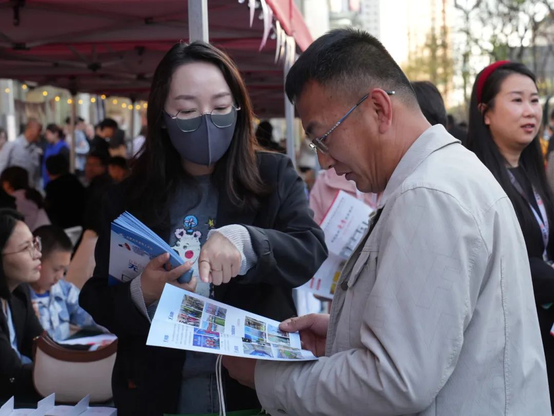 招聘会现场人流如织,人们呼朋引伴一起浏览展台岗位信息,还有些人拿出手机将岗位信息分享给未到现场的亲友,现场企业代表向求职者积极推介岗位。本次招聘会共吸引48家企业参与,涵盖互联网、服务业等多个领域,提供管理、技术等在内的1200余个岗位,线下进场求职人数达6300人次,线上直播带岗入场观看超7000人次,现场初步达成就业意向194人次。
