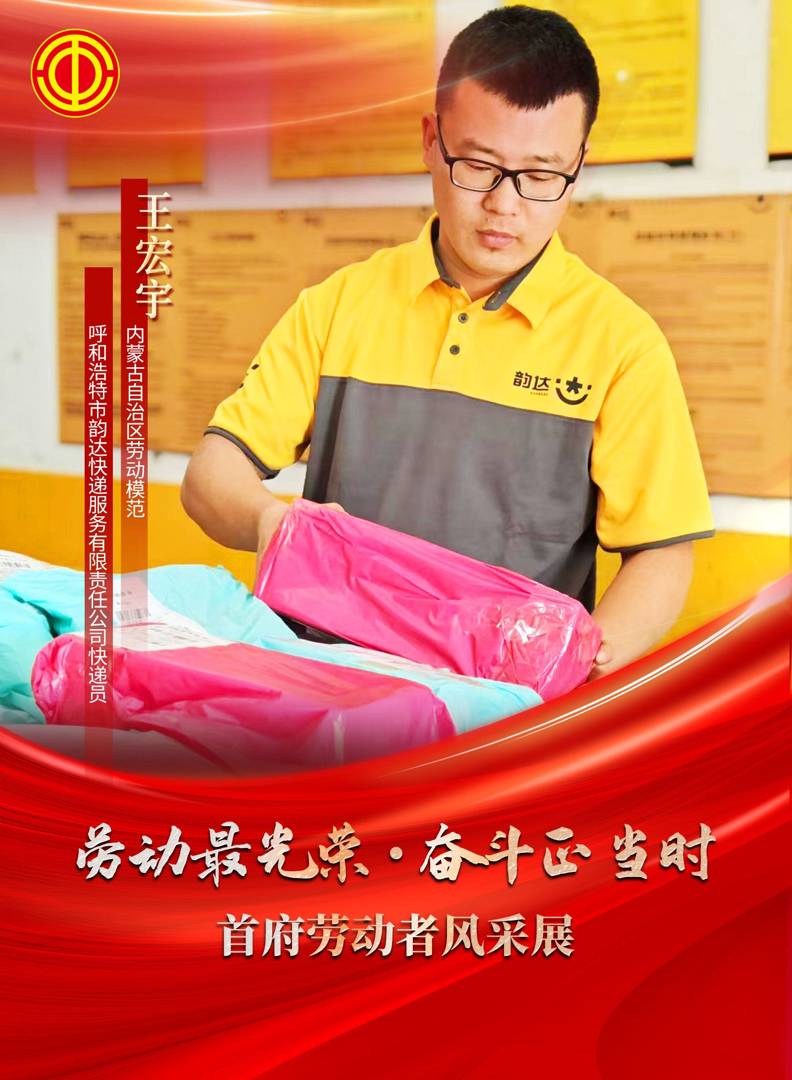 王宏宇,呼和浩特市韵达快递服务有限责任公司快递员,十年如一日扎根一线,以高效服务、创新实践和奉献精神,荣获“呼和浩特市劳动模范““内蒙古自治区五一劳动奖章”“内蒙古自治区劳动模范”等荣誉。