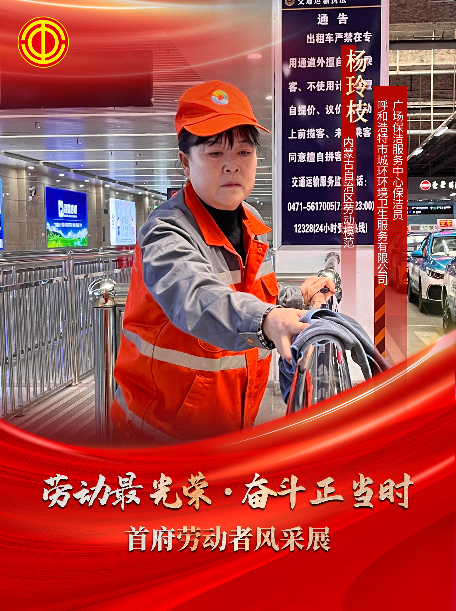 杨玲枝,呼和浩特市城环环境卫生服务有限公司广场保洁服务中心保洁员。2019年参加工作以来,一直践行“ 宁愿一人脏,换来万家净 ”的环卫精神,诠释了何为爱岗敬业、无私奉献。多年如一日,她在平凡岗位上铸就了不平凡的坚守。荣获“第四届内蒙古自治区优秀环卫工人 ”、“自治区劳动模范”荣誉。