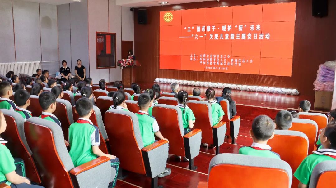 在“六一”国际儿童节来临之际,为深入贯彻习近平总书记关于关心少年儿童健康成长的重要指示精神,进一步加大对新就业形态劳动者子女、留守儿童、困境儿童以及流动儿童的关爱力度,将党的温暖和工会组织的关心送到广大职工及其子女身边,5月29日上午,内蒙古自治区总工会、呼和浩特市总工会、新城区总工会党员干部共同走进呼和浩特市新城区府红学校,开展“‘工’情系稚子 暖护‘新’未来”“六一”儿童节关爱儿童活动暨主题党日活动。自治区总工会党组成员、副主席吴燕平、呼和浩特市人大常委会副主任、总工会主席云玉美参加活动。