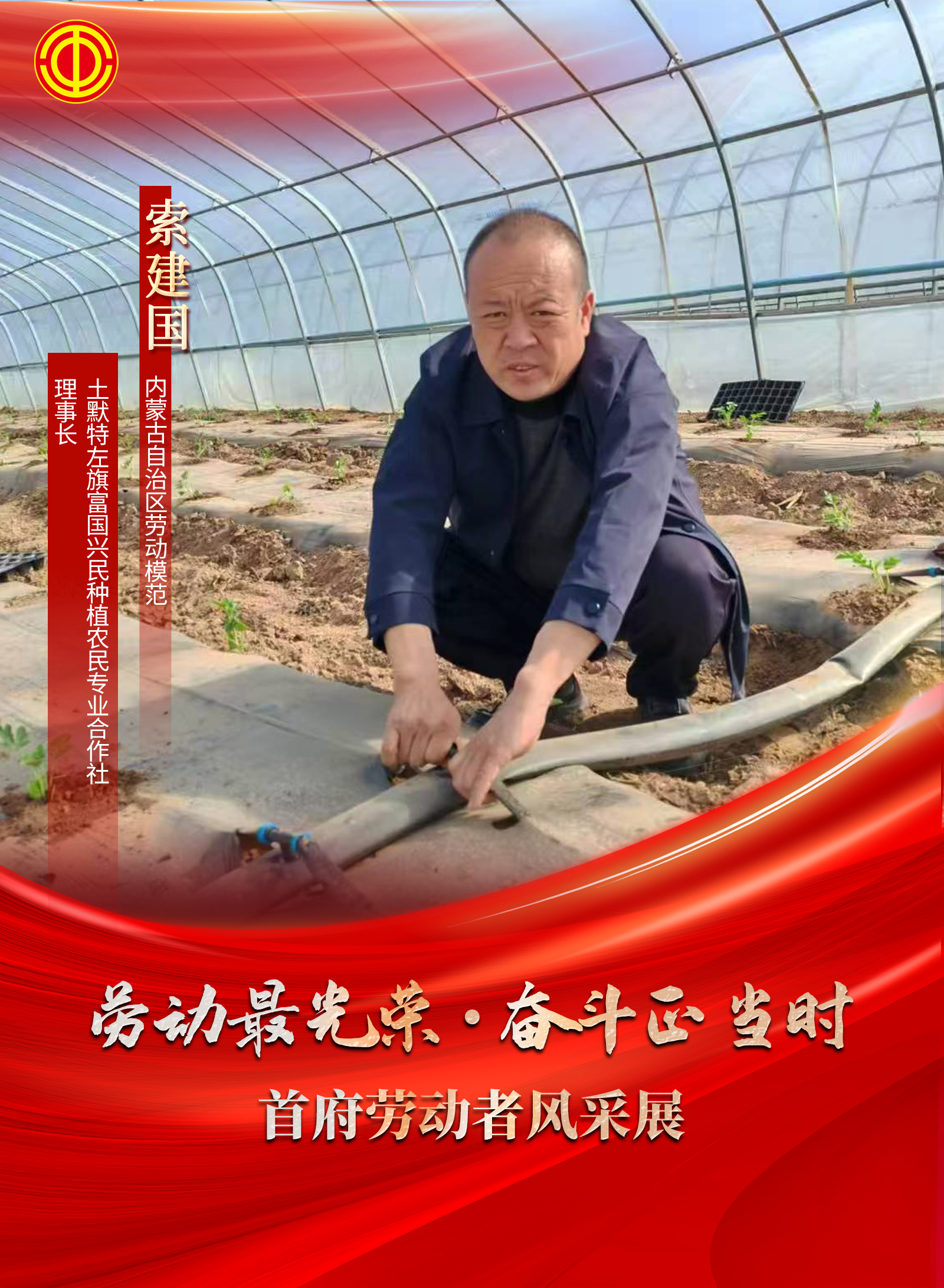 索建国,土默特左旗富国兴民种植农民专业合作社理事长,自2014年合作社成立以来,以创新为帆、科技为桨,在希望的田野上犁出致富新图景。他用二十年扎根乡土的坚守,诠释着新时代新农人的责任与担当,让广袤农田成为乡村振兴的生动注脚。荣获“内蒙古自治区劳动模范”“自治区粮食生产先进个人”等荣誉。