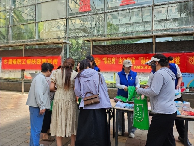 活动现场设置咨询服务台,工作人员通过“讲解+互动”模式传递惠民政策。法律宣传区聚焦《劳动法》《工会法》等法规,以案例解析形式解答劳动合同纠纷、工伤认定等问题,引导居民依法维权;安全生产宣传区通过应急知识手册,向居民详解家庭用电、燃气安全及火灾逃生技巧,强化居民安全防范意识;困难职工帮扶区则细致介绍医疗互助、困难职工帮扶等各项政策,并现场指导申请流程。