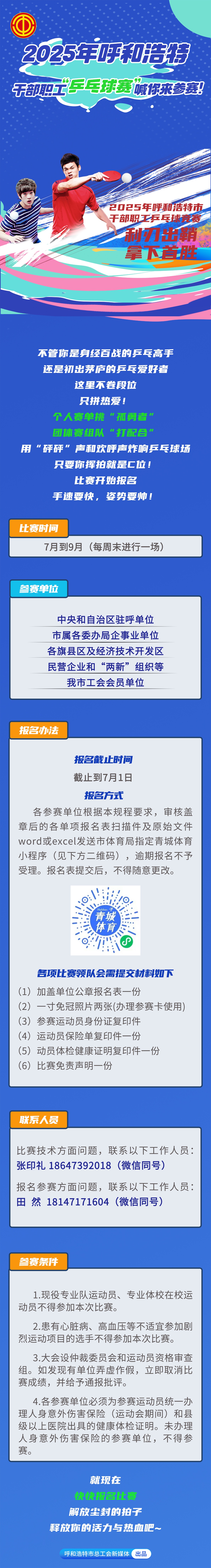 2025年呼和浩特干部职工“乒乓球赛”喊你来参赛!