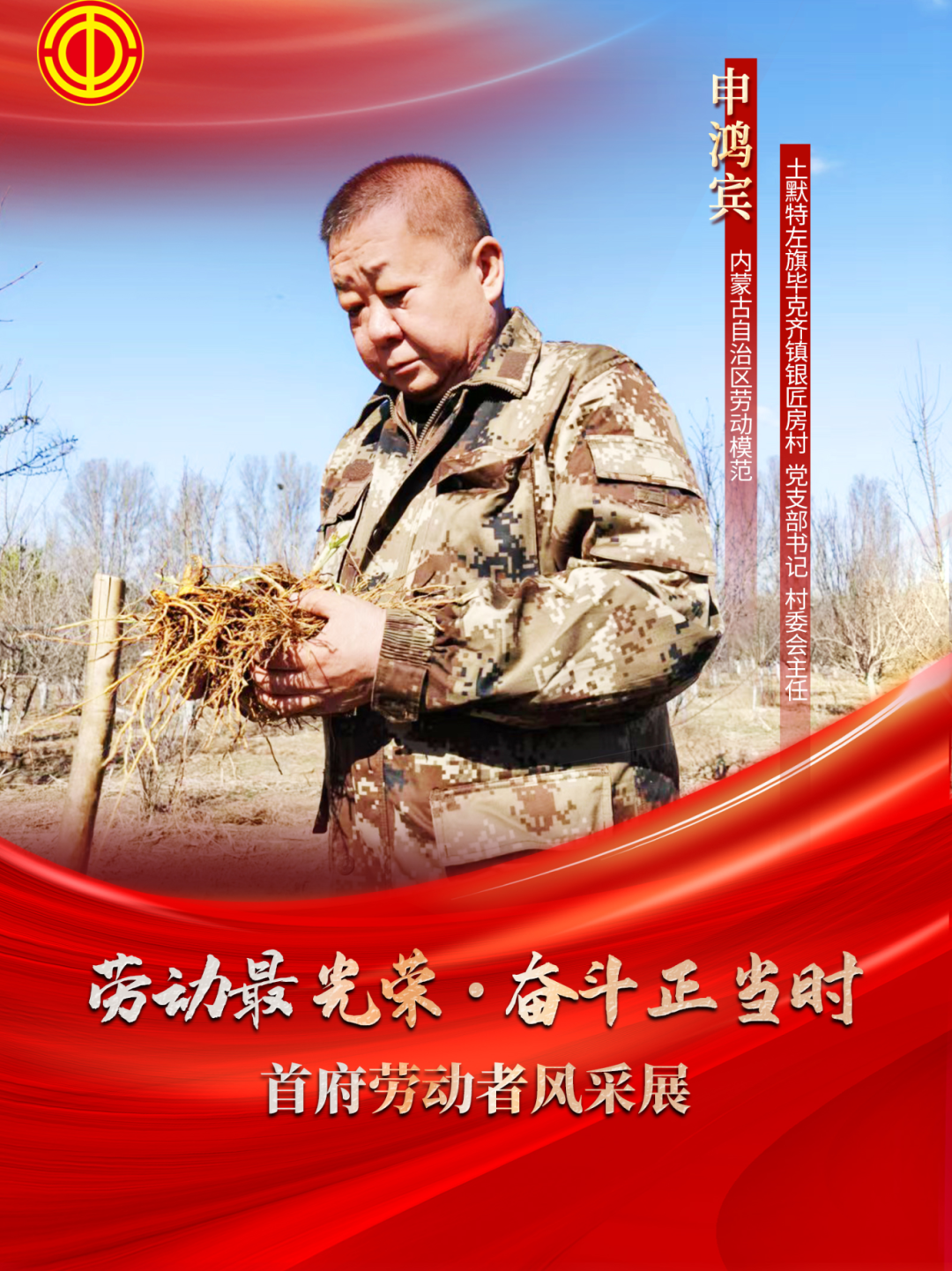 申鸿宾,土默特左旗毕克齐镇银匠房村党支部书记、村委会主任。他以二十余载扎根乡土的坚守,在广袤田野上书写党员担当,用实干为乡亲们铺就致富路,用赤诚温暖乡村的每一个角落。荣获“市级优秀党务工作者”“旗级优秀共产党员”“全市乡村振兴担当作为好支书”“内蒙古自治区劳动模范”等荣誉。