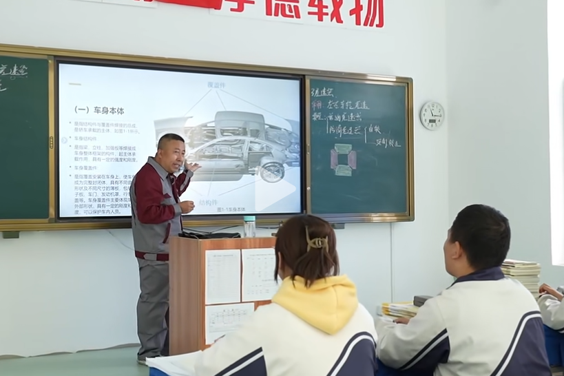 从车间到讲台,角色的转变带来了全新挑战。企业里“做得好”就行,学校里却要“讲得清、教得会”。为了备好第一堂课,他把11年的维修笔记整理成教学案例,用车间废弃的车身零件制作教学模型;为了让学生直观理解喷漆工艺,他在实训室将所有的工艺拆解成每个步骤的作品,让学生可以真切理解。“企业经验是‘怎么做’,教学需要‘为什么这么做’,得把自己掰开了揉碎了教给学生。”这种“实战化”教学模式让他的课堂座无虚席,学生们常说:“赵老师的课听得懂、学得会、用得上。”