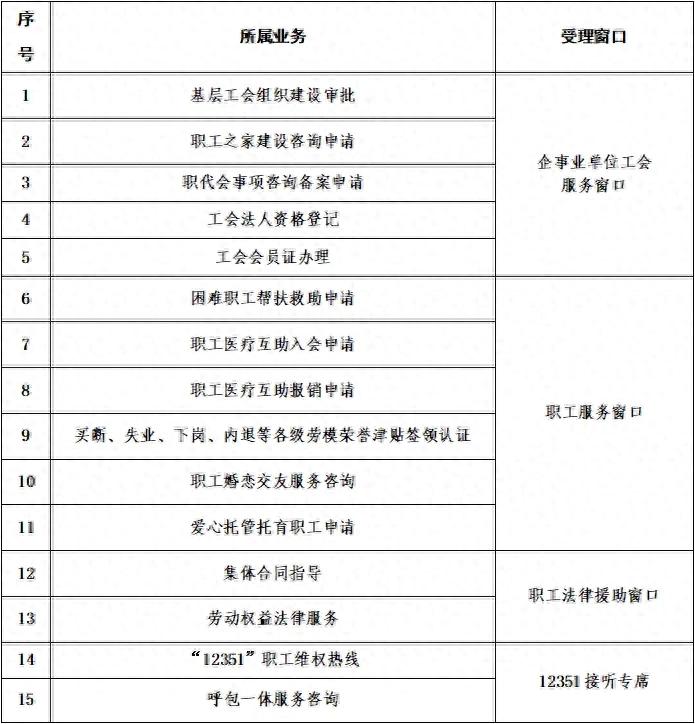 根据工作实际,呼和浩特市总工会驻市政务服务中心服务窗口将对原有22项业务办理事项进行调整:暂停办理8项、新增办理1项、变更(调整办理内容)6项,调整后最终保留15项业务。自 2025年8月11日(星期一)起正式实施。现将具体调整事宜通告如下: