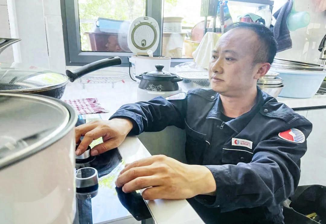 2005年,刚入职的王国飞还是个青涩的“职场小白”。跟着老师傅上门服务时,他的工具包总摆得杂乱无章;面对用户“这个管道为什么会漏气”“日常怎么检查安全”的疑问,他更是紧张得语无伦次,手心直冒冷汗。绝不能一直当“小白”,他暗下决心一定要把技术练扎实,让用户放心。为了提升操作熟练度,他利用休息时间反复拆装灶具;为了掌握管道气密性检测的精准技巧,他模拟不同漏气场景,反复调整检测仪器参数,直至能凭仪器数据和手感快速判断漏点位置,方才满意。正是这份不服输的韧劲,让他在短短几年内就蜕变成能独当一面的维修骨干。