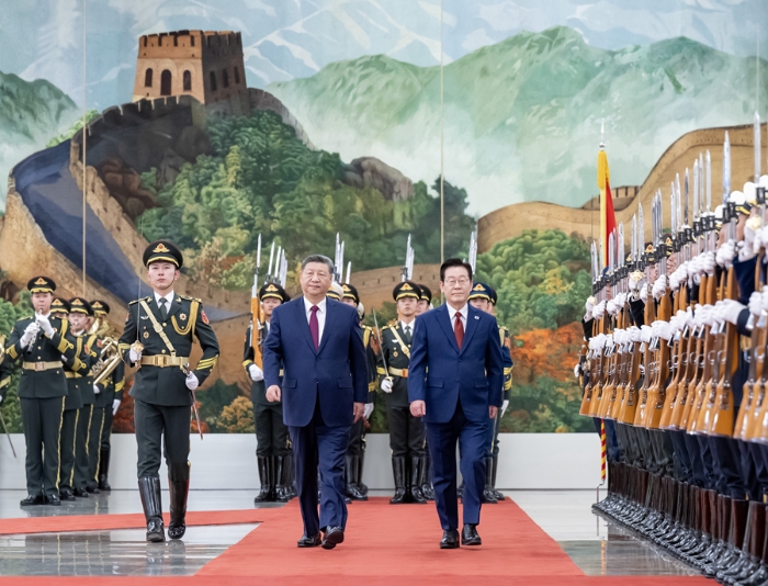 新华社北京1月5日电 1月5日下午,国家主席习近平在北京人民大会堂同来华进行国事访问的韩国总统李在明举行会谈。